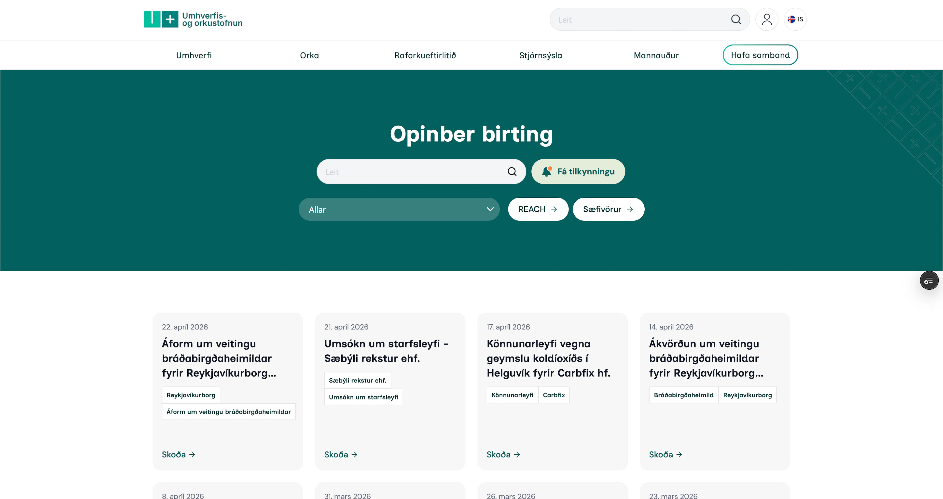 Contributed to the development of uos.is, the official digital portal for Iceland's Environment and Energy Authority, built using Next.js and Tailwind CSS for a fast, responsive user experience. This enterprise-level platform serves as a centralized public gateway, integrated with Iceland's national e-government system (Island.is) and utilizing Mailchimp for automated public communications. Key features include interactive, data-driven dashboards monitoring national energy consumption and air quality, alongside public registries—powered by Algolia for fast search—housing thousands of geological records, technical drawings, and environmental permits. The system also exposes geospatial mapping services (GIS) and open APIs to ensure transparency and public accessibility to Iceland's environmental data.